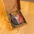 Деревʼяна підвіска на ялинку, розписана вручну в наївному стилі.