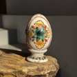Декоративна писанка до столу. Сучасна косівська мальована кераміка, традиційний український посуд, який можна використовувати в повсякденному житті.