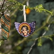 Деревʼяна підвіска на ялинку, розписана вручну.