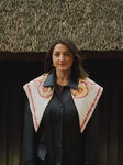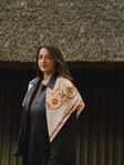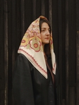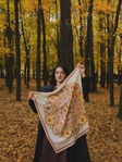 Ця хустка натхненна орнаментом на тарелі, що створена сучасними майстрами косівської мальованої кераміки Оксаною Бейсюк та Михайлом Сусаком.