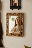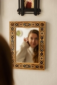 Інкрустоване гуцульське дзеркало. Такі дзеркала, колись були у кожному домі. Наші предки, ставили на саме видне місце у домі тай так робимо ми. Матеріал: дерево груші, перламутр, бісер. Зроблена вручну майстром з Річки Василем Грепіняком.