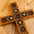 Інкрустований хрест. Матеріал: дерево груші, перламутр, бісер. Зроблена вручну майстром з Річки Василем Грепіняком.