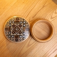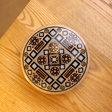 Інкрустована гуцульська рахва для прикрас та всіляких дрібничок. Матеріал: дерево груші, перламутр, бісер. Зроблена вручну майстром з Річки Василем Грепіняком. Має дефект, на використання не впливає.