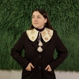 Комірець з вовняної тканини та орнаментикою косівської кераміки. Зроблені з тканини, яка мала стати хустками, але через брак при виробництві цей задум не здійснився. Але тепер вони стали комірцями і можуть файно прикрашати ваше життя таким чином.