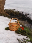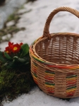 Плетений великодній кошик із натуральної лози, круглої форми. Декорований орнаментами, так як це робили у наших краях в давнину. Ручне плетіння та розпис.