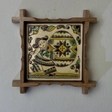 Керамічна плиточка у рамці для декору, позаду є кріплення, щоб вішати на стіну. Сучасна косівська мальована кераміка. Ручна робота, виконана у техніці ритування та декорована традиційними косівськими орнаментами в трьохколірній , часом чотирьохколірній гаммі. Процес створення такого виробу займає близько 2-х місяців та складається із 8-ми різних етапів. Технологія майже не змінилася за останні 200 років. Матеріал: глина, ангоб, поливи.
