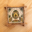 Керамічна плиточка у рамці для декору, позаду є кріплення, щоб вішати на стіну. Сучасна косівська мальована кераміка.