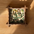 Керамічна плиточка у рамці для декору, позаду є кріплення, щоб вішати на стіну. Сучасна косівська мальована кераміка. Ручна робота, виконана у техніці ритування та декорована традиційними косівськими орнаментами в трьохколірній , часом чотирьохколірній гаммі. Процес створення такого виробу займає близько 2-х місяців та складається із 8-ми різних етапів. Технологія майже не змінилася за останні 200 років. Матеріал: глина, ангоб, поливи.