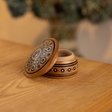 Інкрустована гуцульська рахва для прикрас та всіляких дрібничок. Матеріал: дерево груші, перламутр, бісер. Зроблена вручну майстром з Річки Василем Грепіняком. Має дефект, на використання не впливає.
