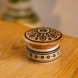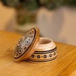 Інкрустована гуцульська рахва для прикрас та всіляких дрібничок. Матеріал: дерево груші, перламутр, бісер. Зроблена вручну майстром з Річки Василем Грепіняком. Має дефект, на використання не впливає.
