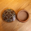 Інкрустована гуцульська рахва для прикрас та всіляких дрібничок. Матеріал: дерево груші, перламутр, бісер. Зроблена вручну майстром з Річки Василем Грепіняком. Має дефект, на використання не впливає.