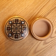 Інкрустована гуцульська рахва для прикрас та всіляких дрібничок. Матеріал: дерево груші, перламутр, бісер. Зроблена вручну майстром з Річки Василем Грепіняком. Має дефект, на використання не впливає.