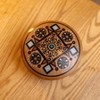 Інкрустована гуцульська рахва для прикрас та всіляких дрібничок. Матеріал: дерево груші, перламутр, бісер. Зроблена вручну майстром з Річки Василем Грепіняком. Має дефект, на використання не впливає.
