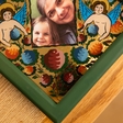 Рамка з ангелочком та ружами, що може оберігати та прикрашати вашу важливу світлину. Намальовано на склі. Так колись оздоблювали важливі фотографії наші предки, і так робимо ми.Розмір рамки 22*22 смРозмір фото 8*7 см
