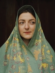 Шарф за мотивами фантастичних звірів, яких часто зображують на косівській кераміці.