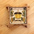 Керамічна плиточка у рамці для декору, позаду є кріплення, щоб вішати на стіну. Сучасна косівська мальована кераміка.