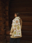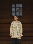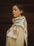 Шарф за мотивами косівської кераміки, натхненна творчістю майстрині косівської кераміки XX ст. Павлиною Цвілик.